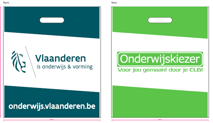 Net als vorig jaar zullen studenten aan de ingang van de SID-in-beurs een zakje aangereikt krijgen om folders in te steken. De zakjes zijn ditmaal aan de ene zijde bedrukt met het logo van Onderwijs Vlaanderen en aan de andere zijde met het logo van Onderwijskiezer. Ze zijn ditmaal ook vervaardigd uit 100% milieuvriendelijk materiaal.