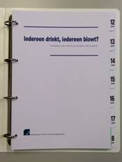 'Drink je alcohol? Hoeveel glazen dronk je de voorbije week? Wat denk je, hoeveel jongens van jouw leeftijd zijn regelmatig dronken?' 'Gebruik je cannabis? Hoe vaak gebruik je? Hoe denk je dat jouw beste vrienden zouden reageren als jij cannabis gebruikt?'   Rondom deze vragen is 'Iedereen drinkt, iedereen blowt' opgebouwd. Met vier vragen peil je naar de jongere zijn alcohol- en/of cannabisgebruik en naar zijn perceptie van het gebruik van zijn leeftijdgenoten. De methodiek is zinvol zowel voor jongeren (12-18-jarigen) die niet drinken of cannabis gebruiken als voor hen die dit wel doen.   'Iedereen drinkt, iedereen blowt?' is een methodiek voor kortadvies, gestoeld op het principe van normatieve feedback, om met jongeren individueel preventief te werken rond alcohol en/of cannabis in het CLB of de bijzondere jeugdzorg. 'Iedereen drinkt, iedereen blowt?' kan besteld worden in de online VAD-catalogus en is bovendien gratis downloadbaar.